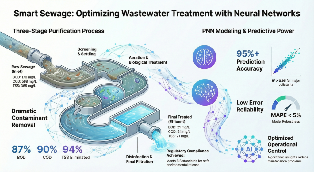 We rarely think about what happens after we flush the toilet or drain the sink. That water, now wastewater, embarks on a hidden journey through miles of pipes, ending up at a facility tasked with an almost miraculous transformation: turning sewage back into safe water. This process is critical for public health and environmental protection, yet it’s often an invisible, underappreciated engineering marvel. But what if we could make these plants not only effective but also smarter, more efficient, and predictive? Recent research from India is doing just that, using a form of artificial intelligence called a Polynomial Neural Network (PNN) to model, predict, and optimize sewage treatment.
