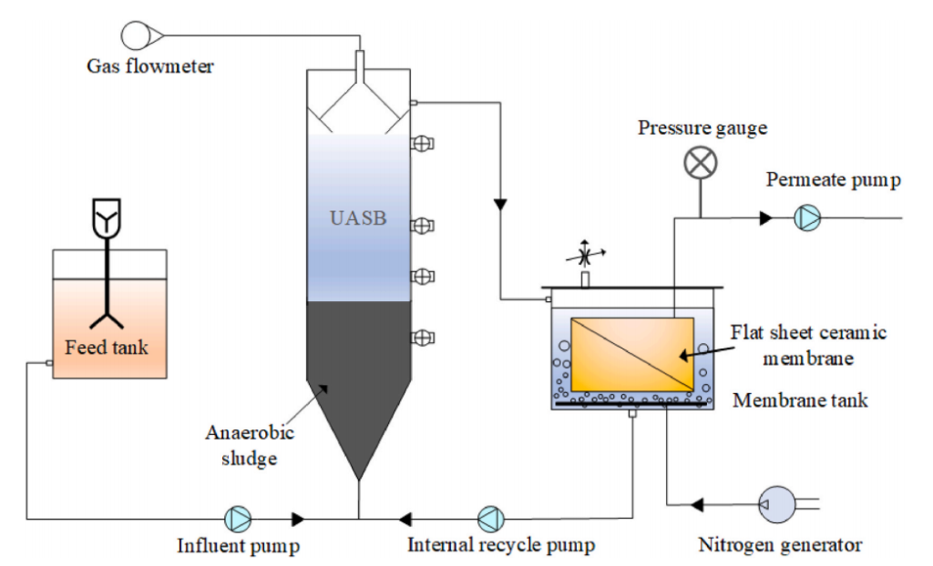 In this study, the researchers used a specific AnMBR configuration that consists of biological reactor, which was an Upflow Anaerobic Sludge Blanket (UASB) reactor, a technology originally developed in the Netherlands and now widely used around the world. In a UASB, wastewater flows upward through a dense blanket of anaerobic sludge granules, where microorganisms devour the organic compounds.